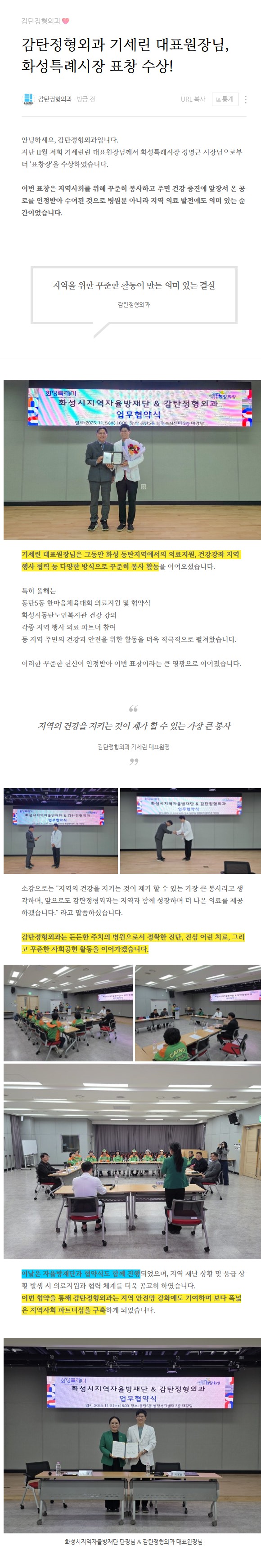 제목 감탄정형외과 기세린 대표원장님, 화성특례시장 표창 수상!